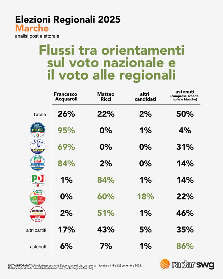 Sondaggi elettorali Swg: Regionali Marche, i flussi di voto