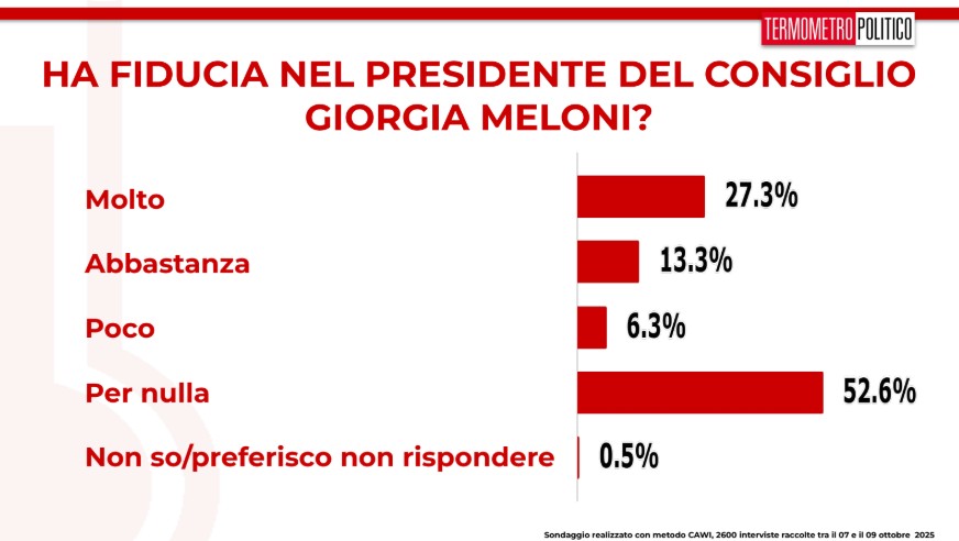 Sondaggi politici elettorali TP 10 ottobre 2025 - fiducia in Giorgia Meloni