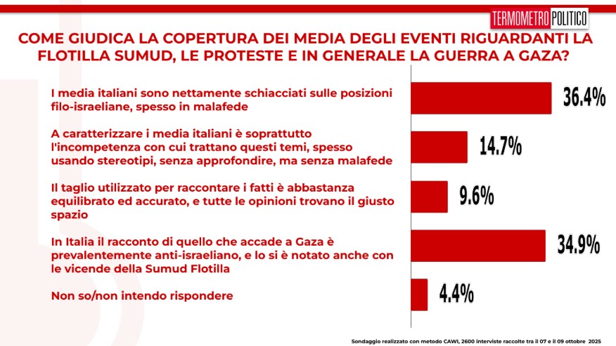 Sondaggi politici elettorali TP 10 ottobre 2025 - la spaccatura netta sulla percezione dei media