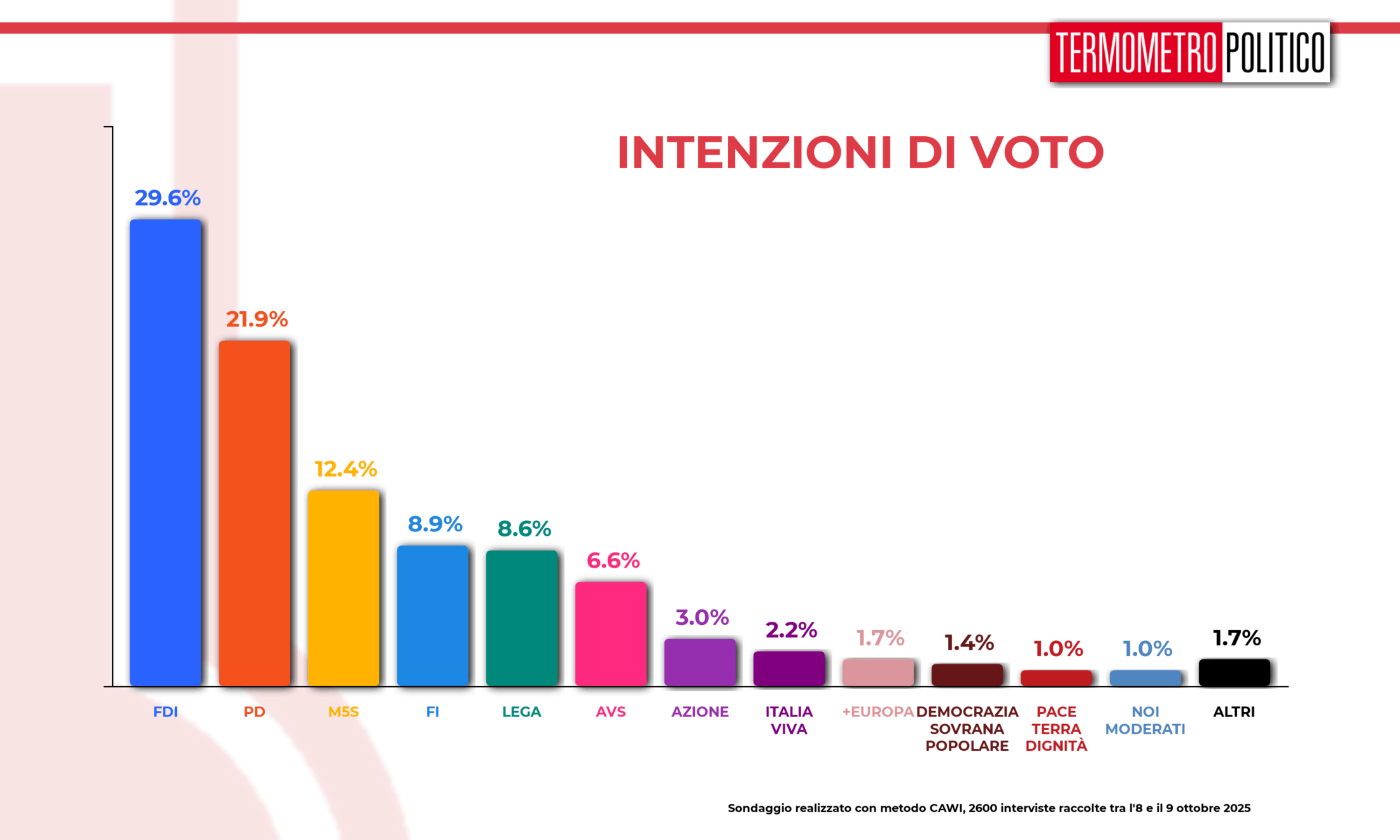 Sondaggi politici elettorali TP 10 ottobre 2025 intenzioni di voto