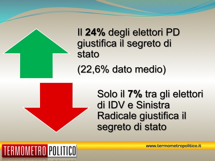 Nel centro-sinistra, come mette in evidenza la seconda slide, gli elettori di sinistra risultano meno “giustificazionasti” rispetto agli elettori del Pd.