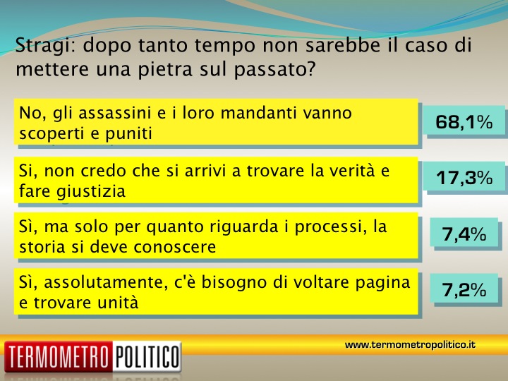 Il sondaggio di oggi riguarda un argomento che interessa la stampa e l’opinione pubblica ogni volta che ricorre l’anniversario di una strage senza colpevoli.