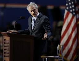 Ieri invece la scena è stata per il candidato alla presidenza, anticipato (per accalorare il pubblico) da due “padroni di casa” come Jeb Bush, ex Governatore, fratello e figlio di ex-Presidenti, e Rubio, giovane Senatore ispanico, esponente dell’ala più liberista del partito, e dall’intervento a sorpresa di un invecchiato Clint Eastwood, autore dello “show della sedia vuota”, rappresentativa di Obama, alla quale ha fatto domande dandosi risposte, arrivando ad accusare il Presidente della guerra in Afghanistan.