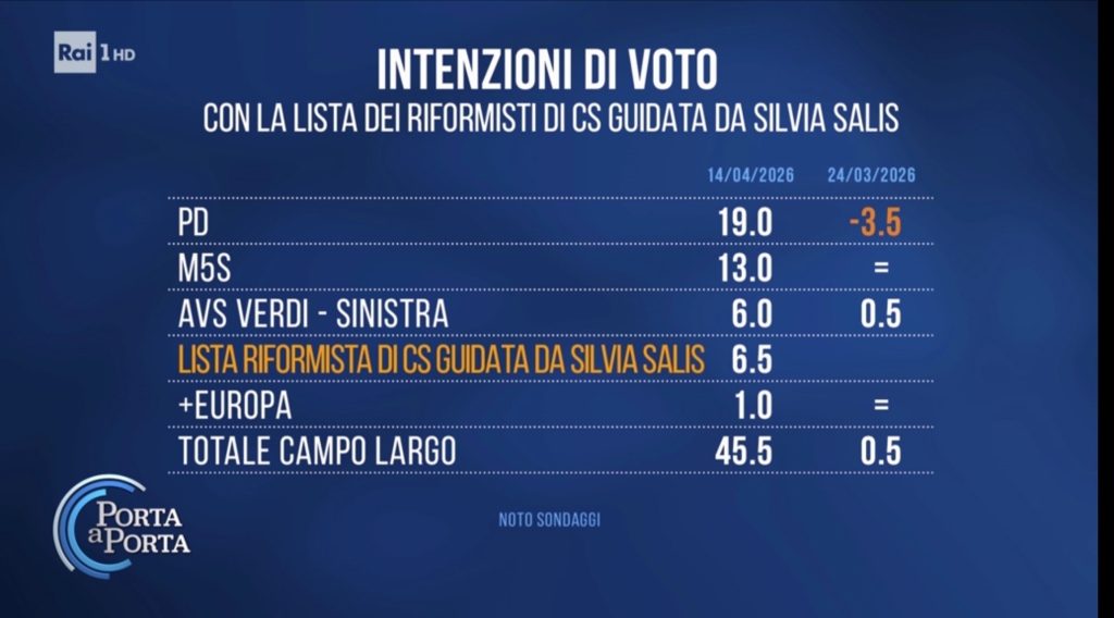 Sondaggi elettorali Noto, lista Salis sarebbe al 6,5%